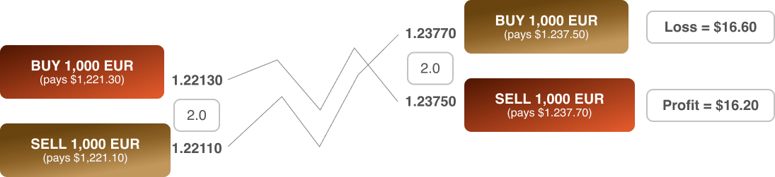 When you go long on EUR/USD, you’re theoretically buying euros with dollars. When you close the trade, your profit or loss will be calculated in dollars. If the euro strengthened against the dollar, you’d get more dollars when you close the transaction. If the euro weakened, you’ll get back fewer dollars.