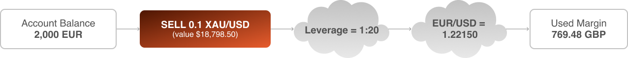 One of the benefits of CFD trading is you can use leverage to reduce how much capital required to open positions. register offers up to 1:20 leverage for trading XAU/USD, which means you only need to provide a 5% margin to open a position.