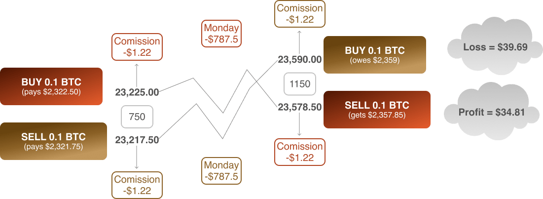 Costs to trade BTC/USD