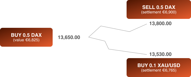 When you go long on the DAX, which means you expect the price to rise, you’re theoretically buying DAX with euros. To close the position, another trade in the opposite direction is used to offset it. Your profit or loss will be determined by the difference in value between the opening and closing orders. If the value of DAX increases, you’d end up with more euros when the position is closed. However, if the value of DAX falls, you’d end up with fewer euros.